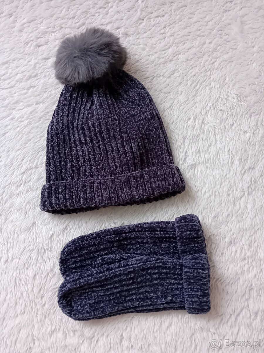 Komplet Czapka i rękawiczki w kolorze granatowym. Ciepły, przytulny i wygodny. Idealny na chłodne dni.
